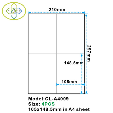 Dhesive-etiquetas de envío 4 por hoja, papel adhesivo de dirección tamaño A4 para impresora de inyección de tinta